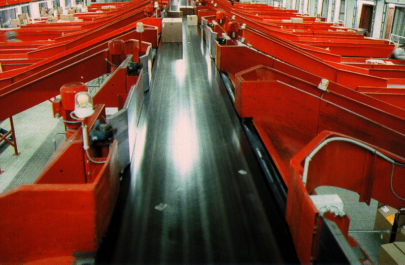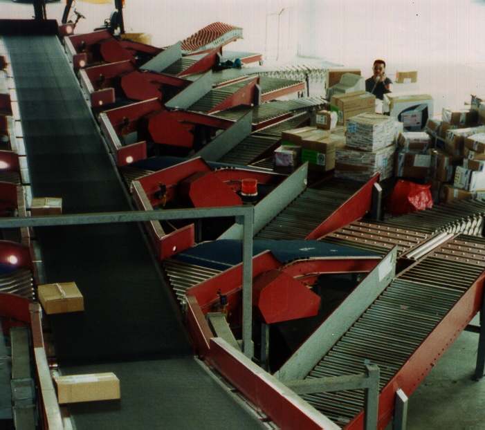 Hier greift unsere Speziallösung in Echtzeit. Wir unterbrechen die Verbindung Scanner- Sortiersteuerung und integrieren einen Industrie- Spezialrechner mit unserer Echtzeit- Software, der die Tabellen und die Steuerung der gesamten Anlage übernimmt. Möglich sind hier Insellösungen oder Konzernlösungen mit Intranet-/Internetanbindungen. Fehlerüberwachung per E- Mail, FTP, SMS usw.(auch weltweit) sind weitergehende Prozesse, die mit einer SPS- Steuerung alleine nicht abgedeckt werden können.